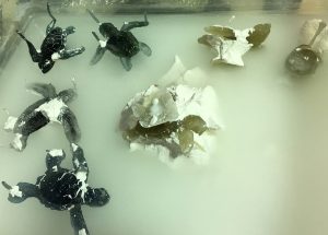 There is the song….”When you walk through a storm hold your head up high….and don’t be afraid of the dark….for at the end of the storm is a golden sky”..….and the last frenzy of cast glass hatchlings for the Cycle of Life Sculpture! Hallelujah!!!