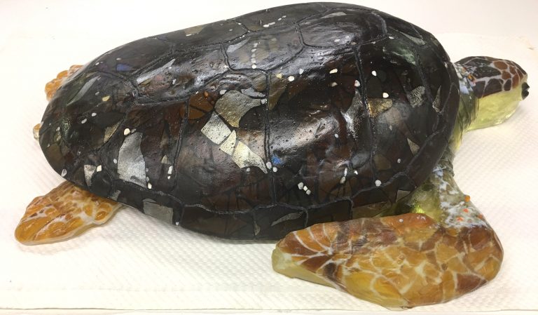 Thank you to Team Member, Cathy Coverley, for designing and fusing the beautiful carapace and casting the plastron with head, tail and flippers, while we were working on the project at the Corning Museum of Glass.