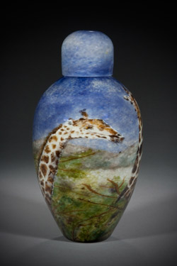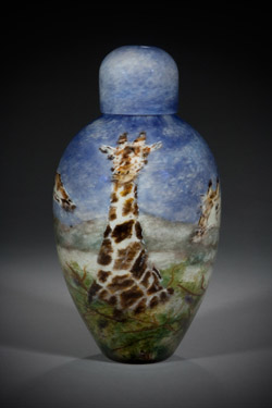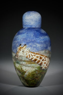 In December 2009, I was approached by a gentleman to do a memorial vessel that would house his wife’s ashes who had passed away unexpectedly earlier in the year. They loved Africa and had admired my giraffe pieces for several years. I was honored to create this fine art vessel. The piece was delivered to him in July 2010.