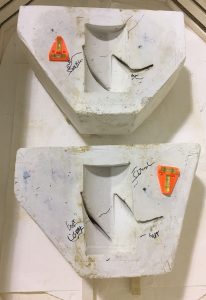 The second sculpture to complete this artwork is a portion of a boat propeller. I acquired a propeller, made a silicon mold, then wax model, then plaster mold and filled the cavity with glass. Technically, it was my aim to fill the blades completely with glass. Visually the glass propeller works well for the overall concept so I used it. The images are a selection of the process. This overall sculpture has been submitted for a conservation show, and I will post the complete images after I have heard back from them.